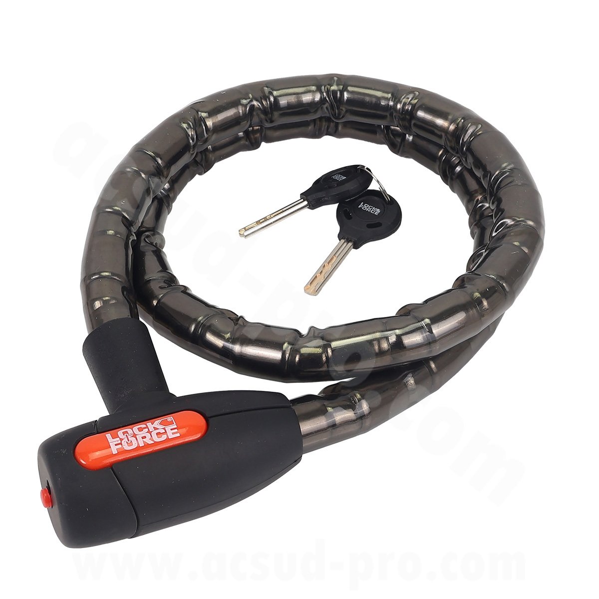 Antivol moto LOCK FORCE Antivol articulé Lockforce 20mm 1,5 mètre — Acier trempé 20mm, anti-crochetage, livré avec 2 clés.